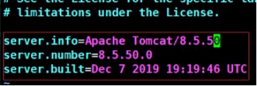 vi /usr/local/tomcat8/lib/org/apache/catalina/util/ServerInfo.properties