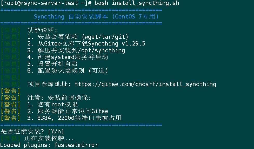 title " Syncthing 自动安装脚本 (CentOS 7专用)"