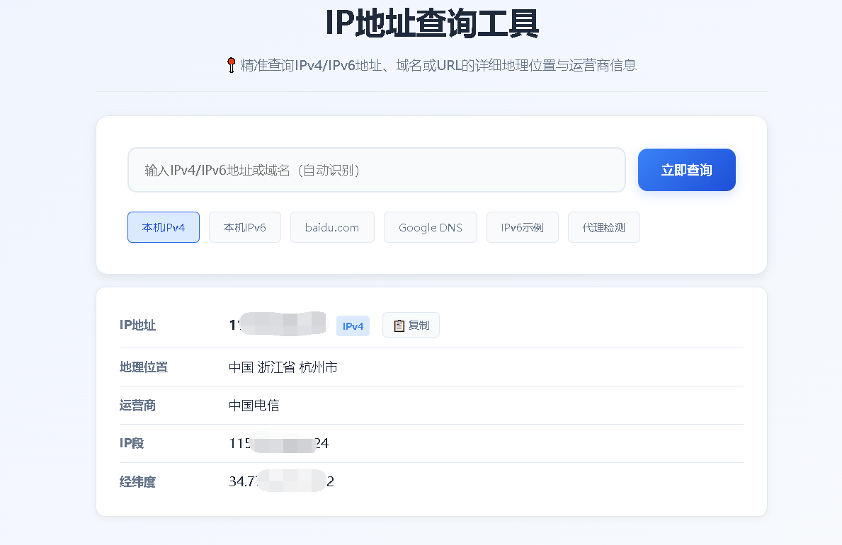 - ✅ 指定 IP:支持 IPv4/IPv6 地址查询