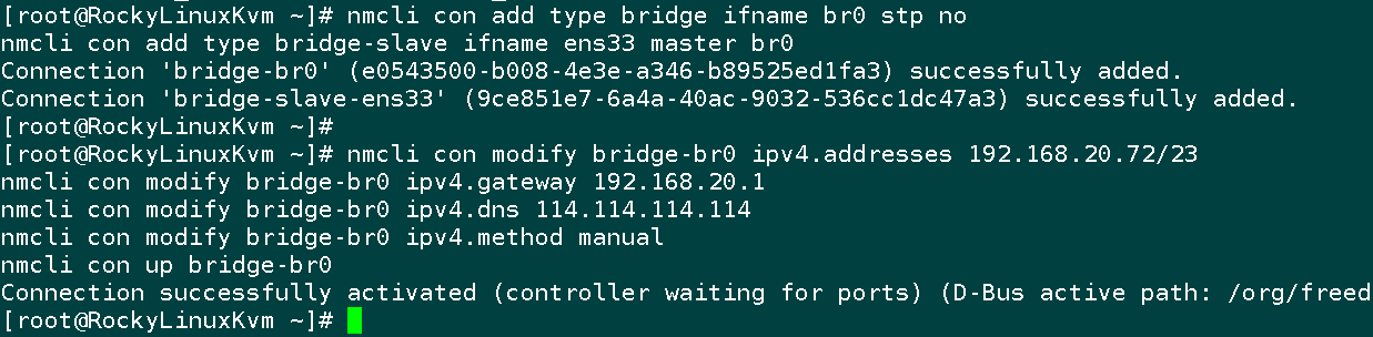 nmcli con modify bridge-br0 ipv4.addresses 192.168.20.72/23