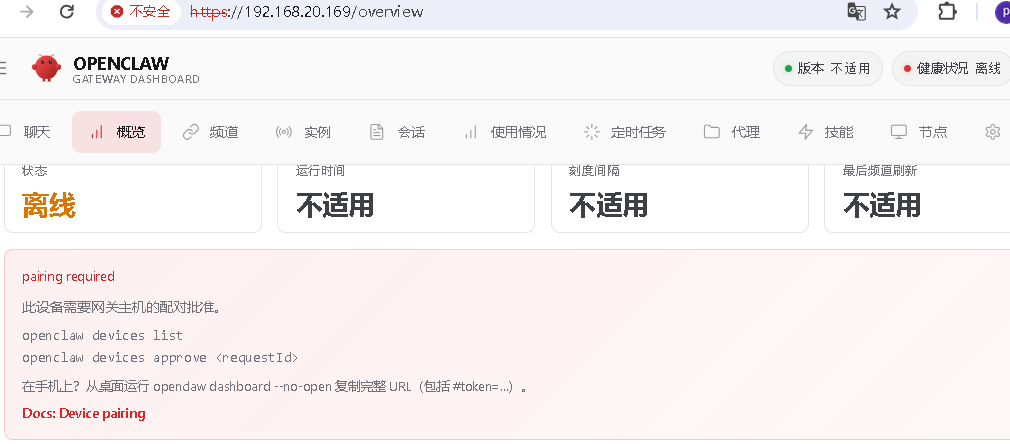 首次从浏览器访问,需要将当前设备与 OpenClaw 服务进行配对。