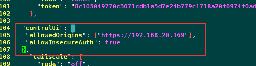 /root/.openclaw/openclaw.json,在配置中增加controlUi字段。