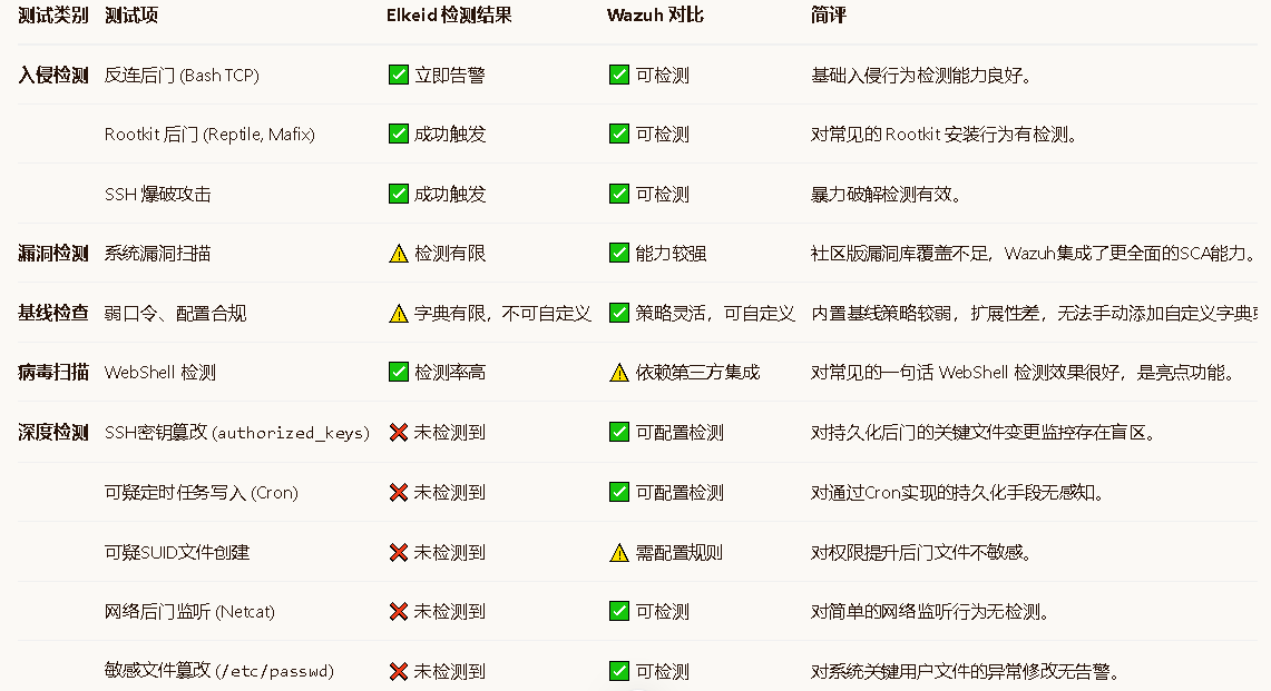 评估对比:与同类开源 HIDS 方案(如 Wazuh)进行初步对比,总结其优势与待改进点。