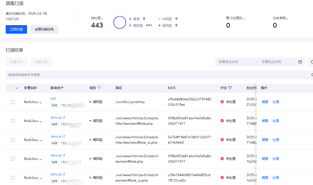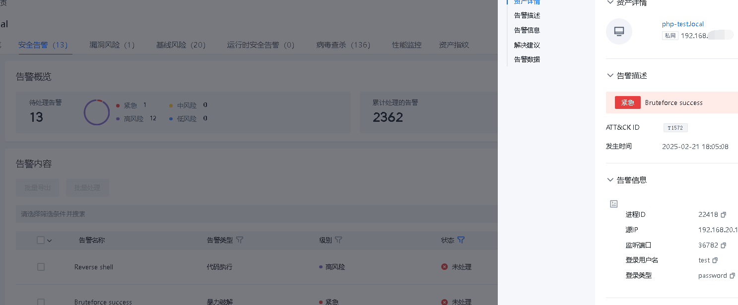 功能验证:测试其入侵检测、漏洞扫描、基线检查、后门检测等核心安全能力。