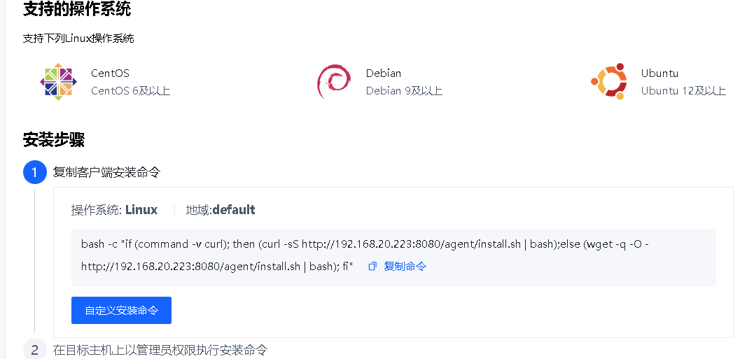 安装指南页面,复制生成的安装命令。 - 在需要监控的 Linux 主机上以 root 权限执行该命令。