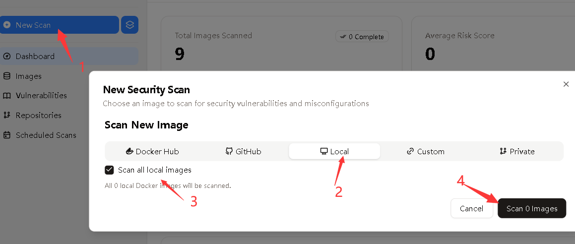 - 一站式集成 Trivy、Grype、Syft、Dockle、OSV Scanner、Dive 6 大安全工具