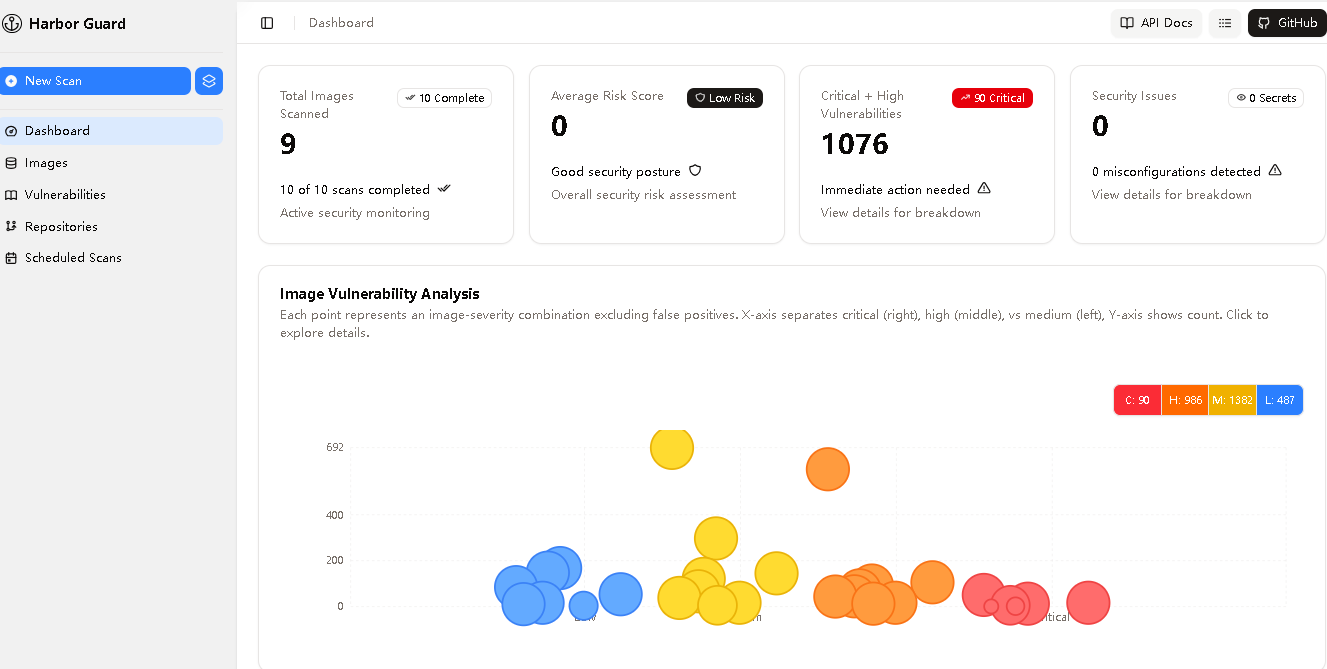HarborGuard 是一个集成多种主流安全工具的容器安全扫描平台,提供统一的 Web 界面,用于: