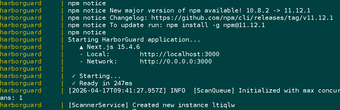 基于 Docker Compose,我在测试环境中快速完成了 HarborGuard 及其 PostgreSQL 依赖的部署。整体过程简单清晰,对现有环境无侵入,适合作为轻量级安全平台进行引入。